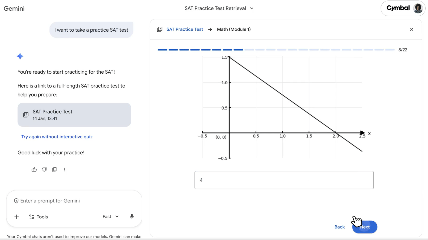 Students can take complete SAT practice tests for free directly in the Gemini app.